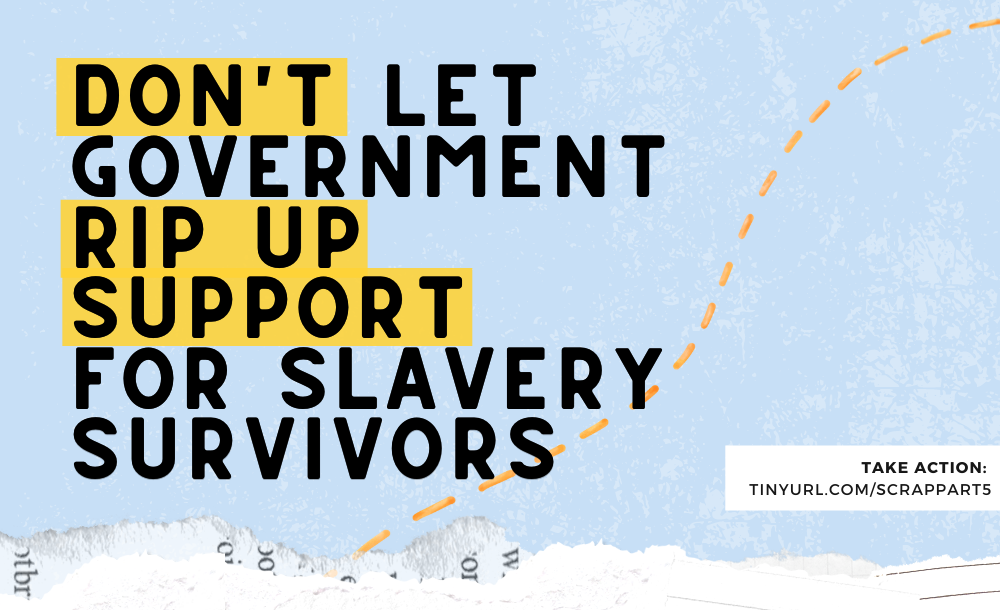 As concerned organisations and individuals, we urge MPs to act against the repeal of hard-won rights under the Modern Slavery Act, and to use whichever platforms are at their disposal to raise these concerns with Government, urgently.